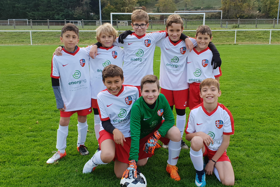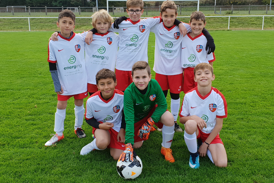 L’équipe des U11 de Saint Baldoph s’est vue offrir des maillots de match aux couleurs de l’espoir et du logo de ENERGing !